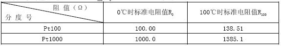 按IEC751國際標(biāo)準(zhǔn),溫度系數(shù)TCR=0.003851,Pt100(R0=100Ω)、Pt1000(R0=1000Ω)為統(tǒng)一設(shè)計型鉑電阻。TCR=(R100-R0)/(R0×100),其中