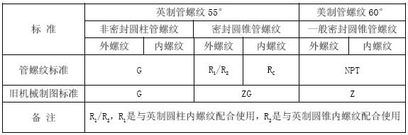 舊機(jī)械制圖標(biāo)準(zhǔn)與現(xiàn)行管螺紋代號的對應(yīng)關(guān)系