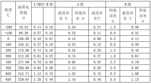 鉑電阻的誤差數(shù)據(jù)表(絕對值)